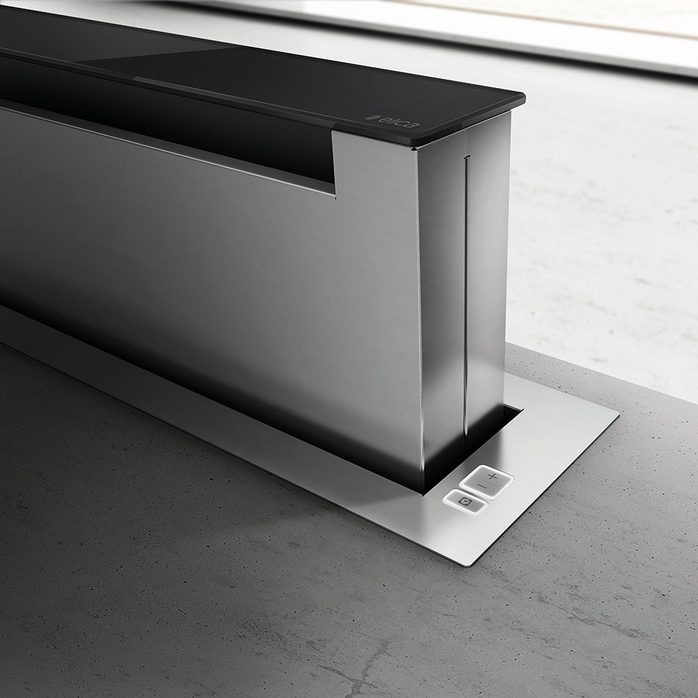 Встраиваемая вытяжка ELICA PANDORA IX/F/90 интегрируется в столешницу, благодаря чему поглощает загрязненный воздух и запахи от приготовления пищи почти мгновенно. Производительность на интенсивной ступени составляет 1200 куб. м в час, что является оптимальным даже для просторных кухонных помещений.